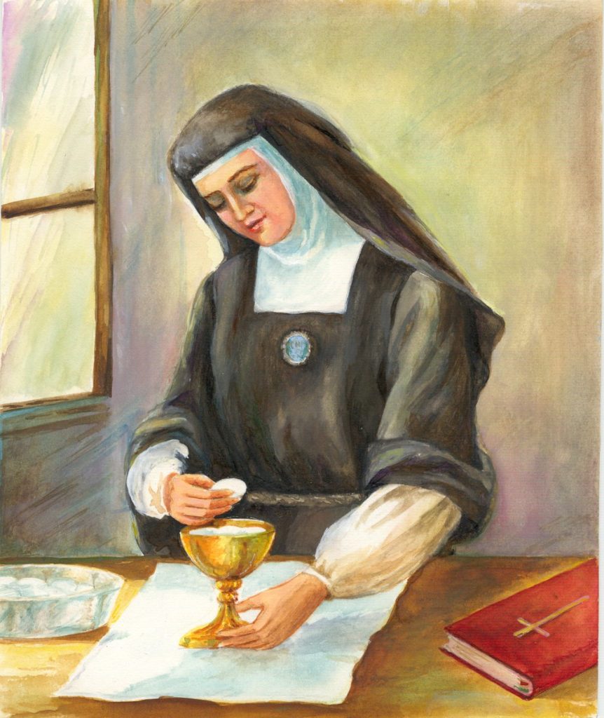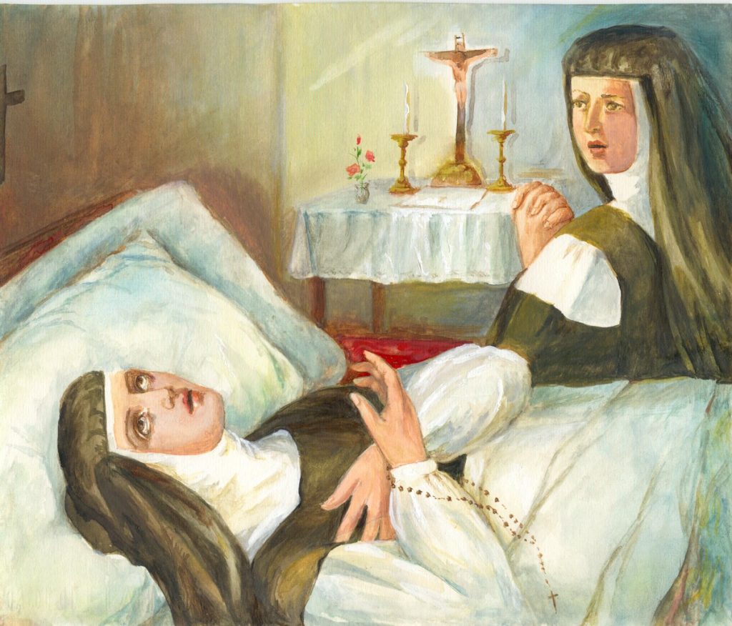 Los ratos en que se encontraba mejor, la enfermera la levantaba y la llevaba a la reja del coro, junto a la Hostia divina, como ella pedía. Inmersa en el misterio salvador, solía decir: