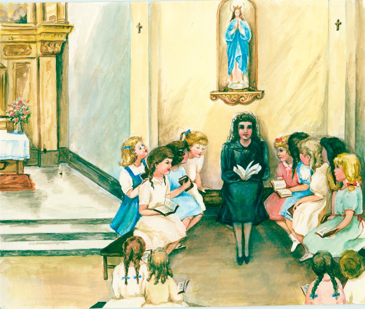A los cinco años comenzó a asistir a una pequeña escuela frente a la casa de los abuelos, demostrando enseguida un vivo deseo de prepararse para la Primera Comunión, tanto que era extraordinario en una niña de aquella edad. Una vez terminada la clase, procuraba retrasarse con las mayores que se preparaban para tan solemne acto, porque «le gustaba mucho oír hablar del Señor», hasta que un día pidió permiso a la maestra para asistir a las explicaciones. Desde entonces se quedaba siempre, poniendo mucha atención, sin hablar ni distraerse con las otras niñas.