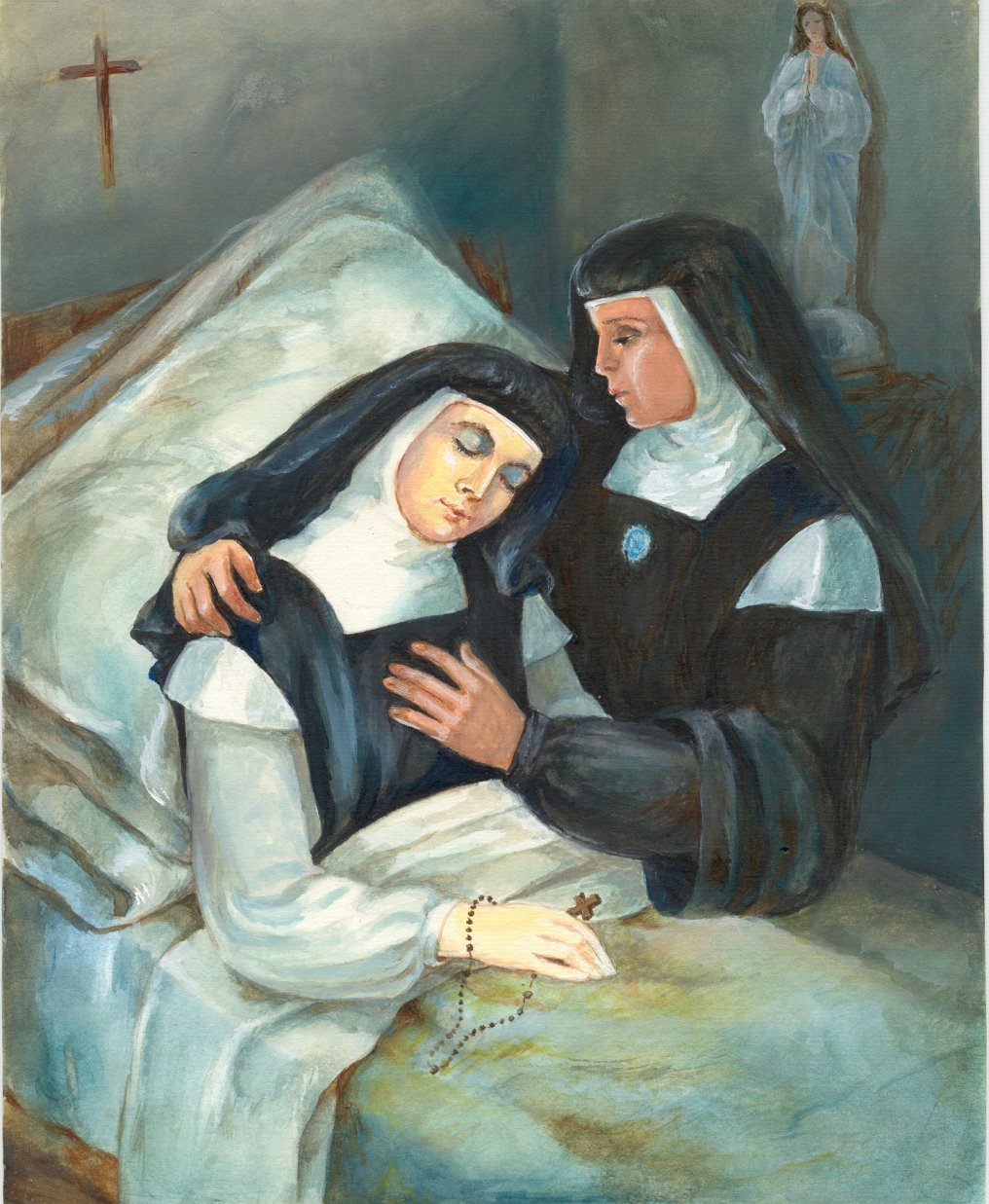 Soportó dolores agudísimos con gran fortaleza, sin que se quejara nunca delante de sus hermanas o de otras personas. Se estaba consumando el holocausto y la víctima permanecía enteramente entregada a la acción purificadora del Sacerdote divino.